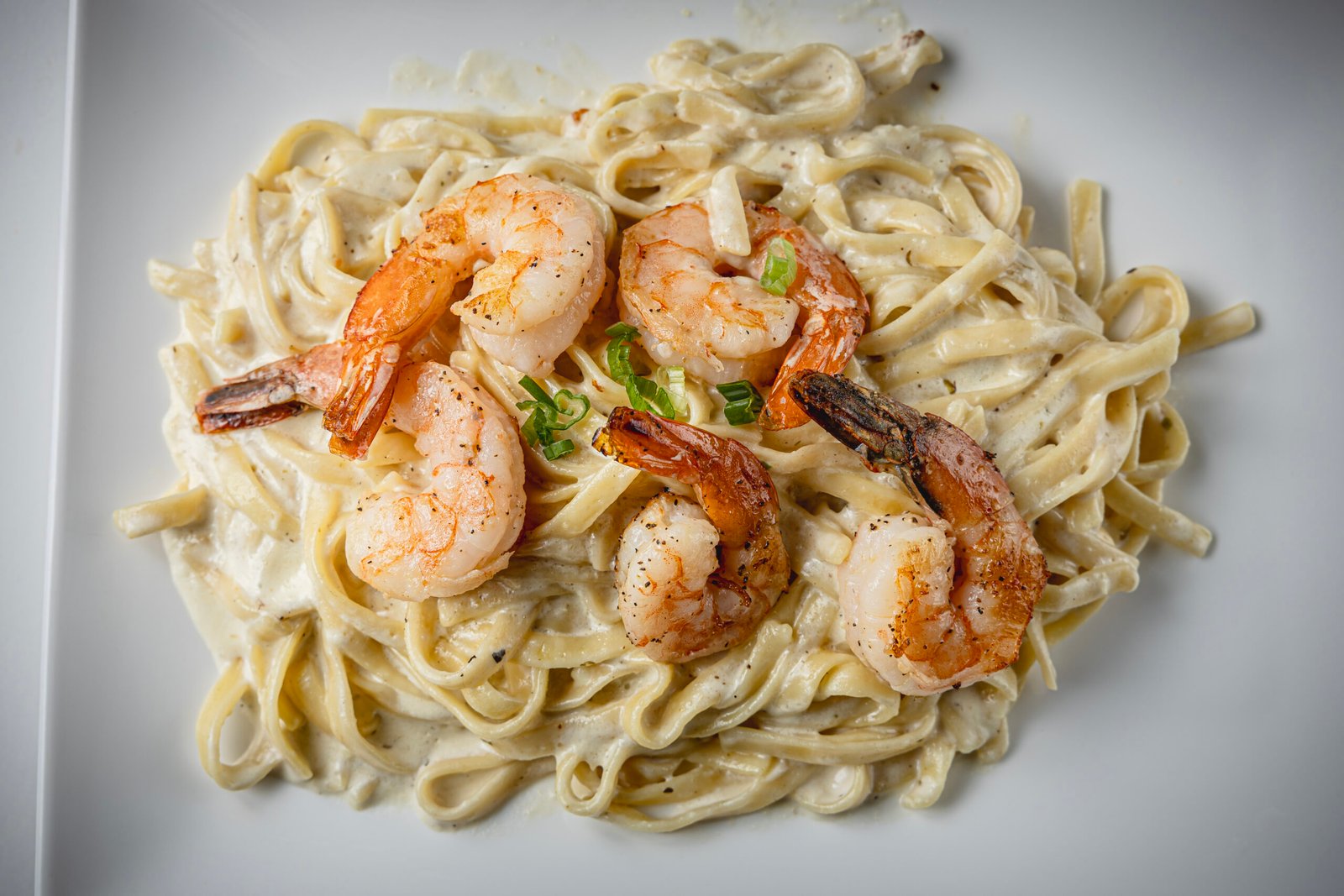 Our Fettuccine Alfredo is made with perfectly cooked fettuccine noodles enveloped in a rich, buttery Alfredo sauce. Ingredients include: Fettuccine pasta (semolina wheat), heavy cream, butter, Parmesan cheese, garlic, salt, black pepper, and optional parsley garnish. Add grilled chicken or shrimp for an extra boost of flavor and protein.