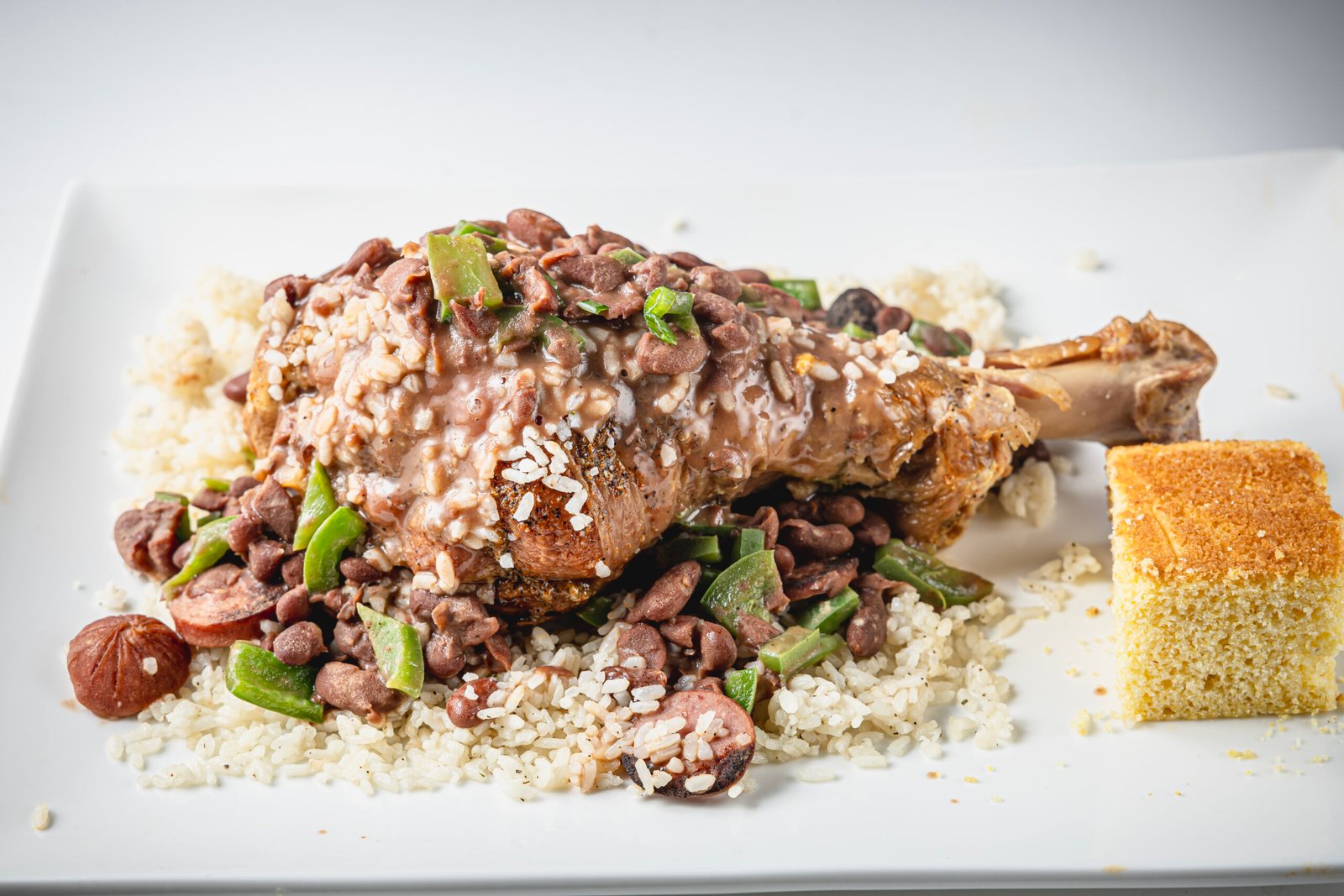 Experience the best of Southern comfort food with our Jambalaya Stuffed Turkey Leg. This hearty dish features a tender, smoky turkey leg stuffed with a mouthwatering jambalaya mix, including savory rice, seasoned sausage, and a perfect blend of spices. Roasted to perfection, the turkey leg is juicy on the outside while the jambalaya filling delivers a burst of flavor in every bite. Whether you’re craving something bold, savory, or unique, this dish is a true culinary delight that combines two Southern favorites in one unforgettable meal.