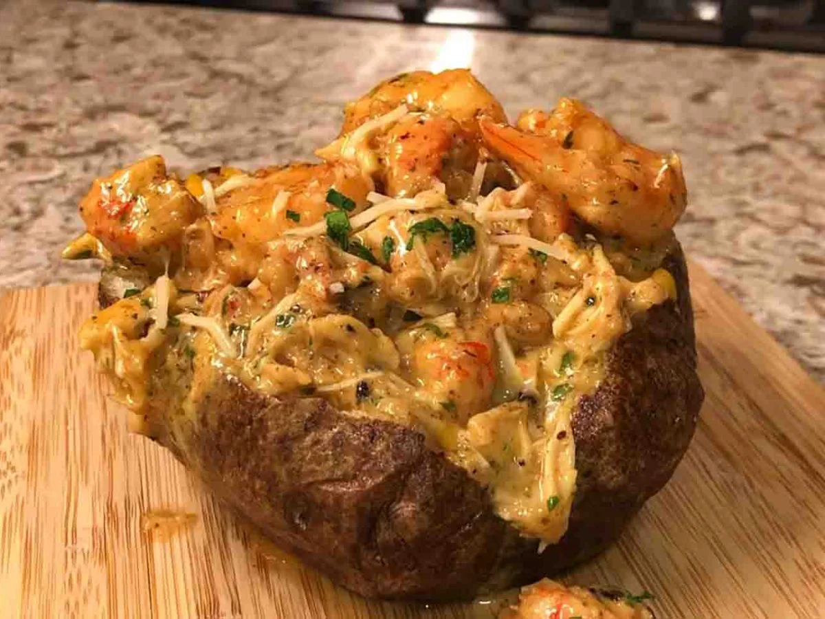 Baked Potato Loaded with Shrimp and Crawsh